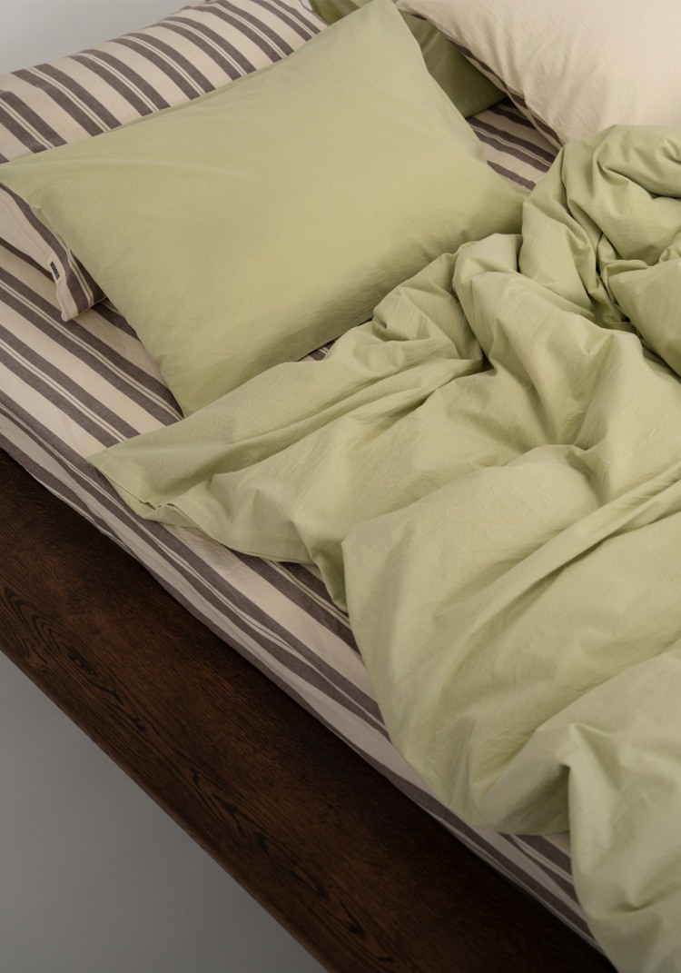 Еще один ключевой предмет в нашей линейке — одеяло-комфортер. Его не нужно заправлять в пододеяльник: можно просто стирать одеяло каждый раз, когда меняете постельное белье. Комфортер помещается в обычную стиральную машину и быстро сохнет. Модель представлена в разных расцветках и сочетается с другим нашим текстилем, так что вы легко соберете идеальный комплект для своей кровати.