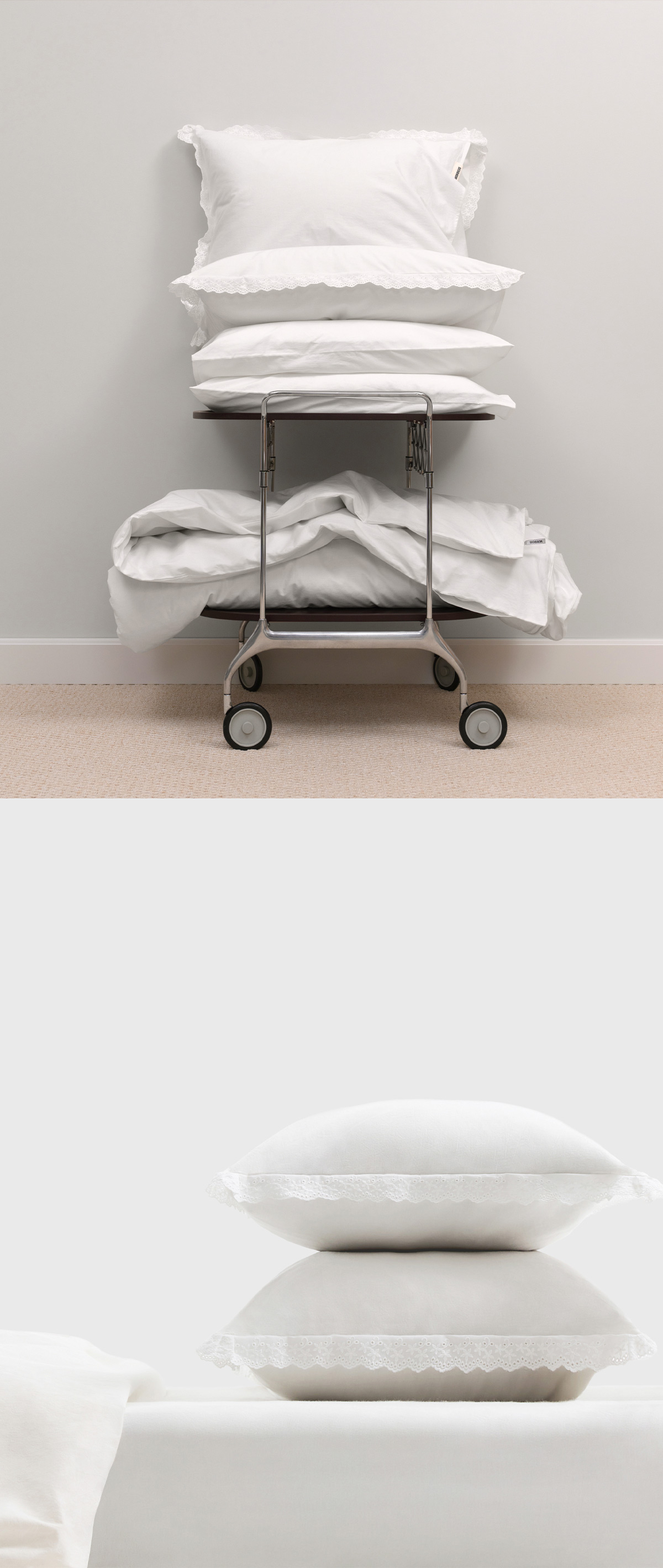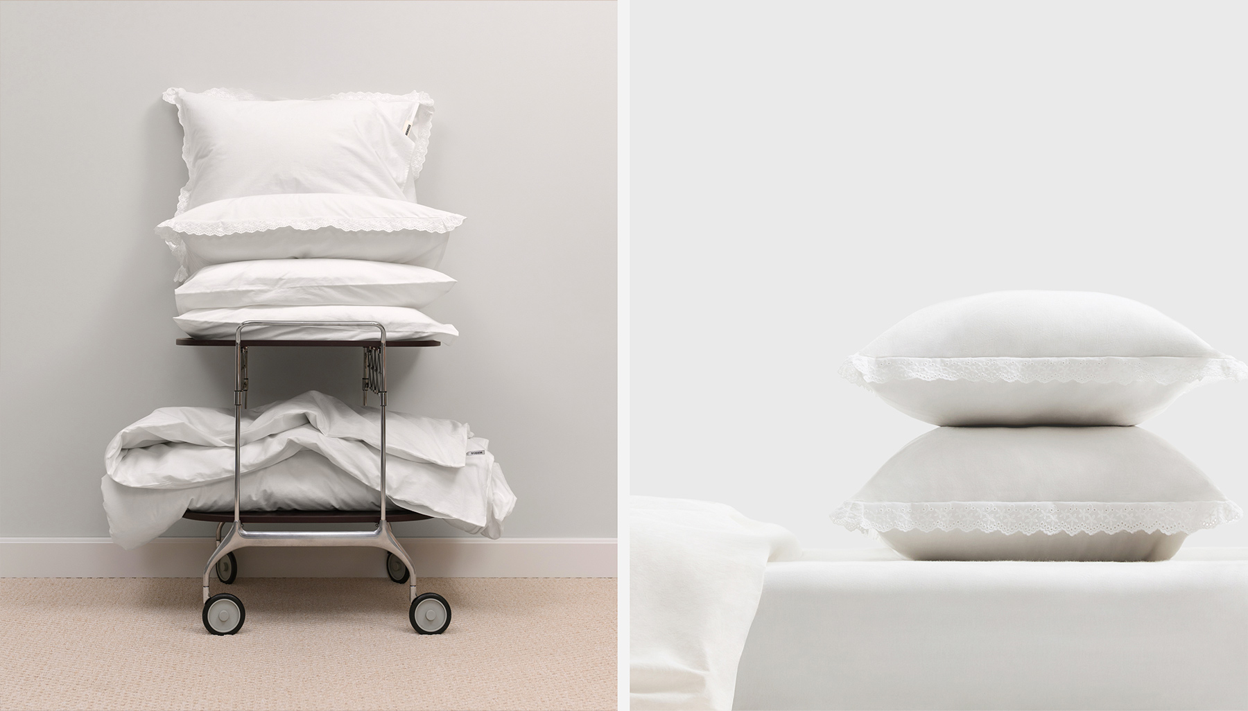 Пуховую коллекцию дополняют белоснежные наволочки с кружевом, выполненные из натурального варёного хлопка в оттенке Pure. Деликатное кружевное шитьё отсылает к эстетике романтизма — тем временам, когда сладкий сон на пуховых перинах был частью нормы, а умение искренне наслаждаться прекрасным подчёркивало власть эмоций над разумом. Сегодня мы возвращаем в повседневность вкус к простым, вместе с тем изысканным удовольствиям.