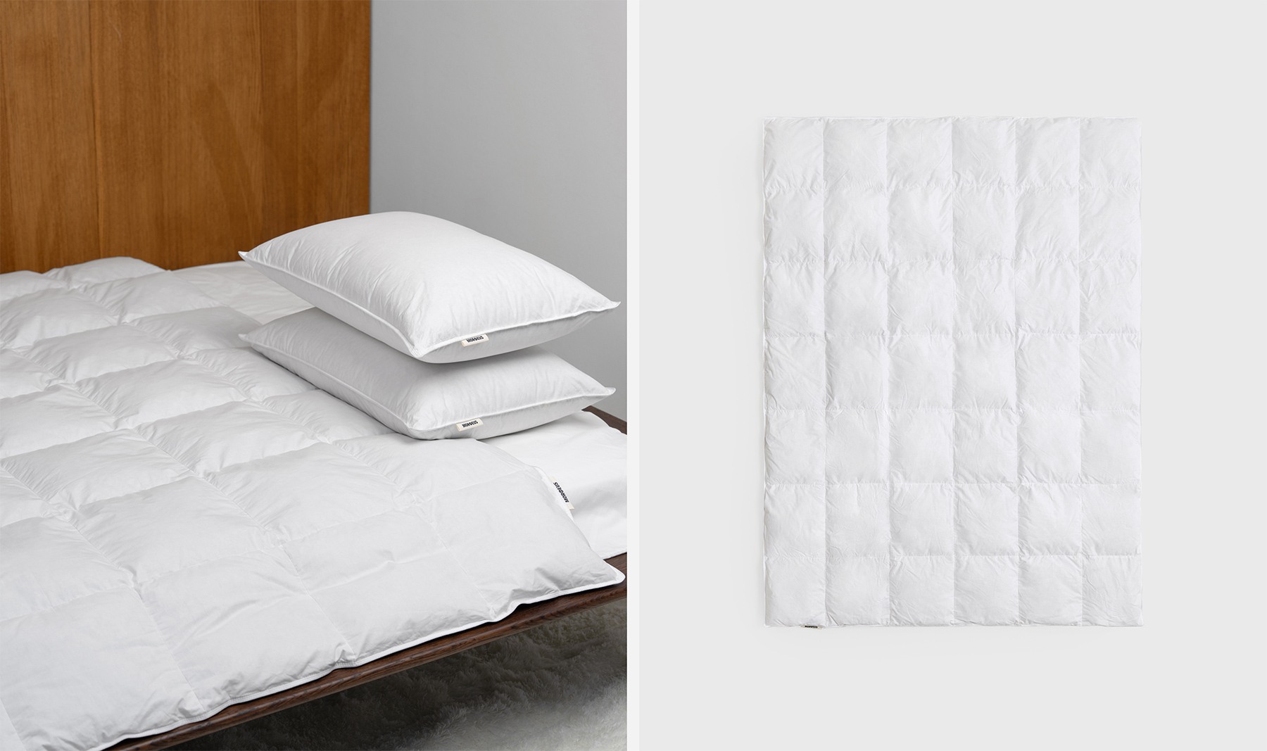 В нашей культуре пуховое одеяло — символ высшей степени комфорта. Мы вдохновились описаниями дворянских спален и выпустили одеяло, умеющее согревать и хранить уют поколение за поколением. Кассетная стёжка образует рельефные квадраты, контуры которых читаются через пододеяльник. Такая конструкция равномерно удерживает пух и сохраняет объём изделия. На одеяло не стоит ложиться сверху — но лёгкое похлопывание вернёт форму каждой кассете.