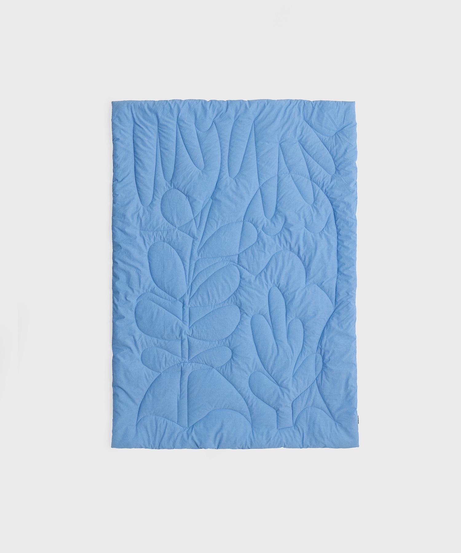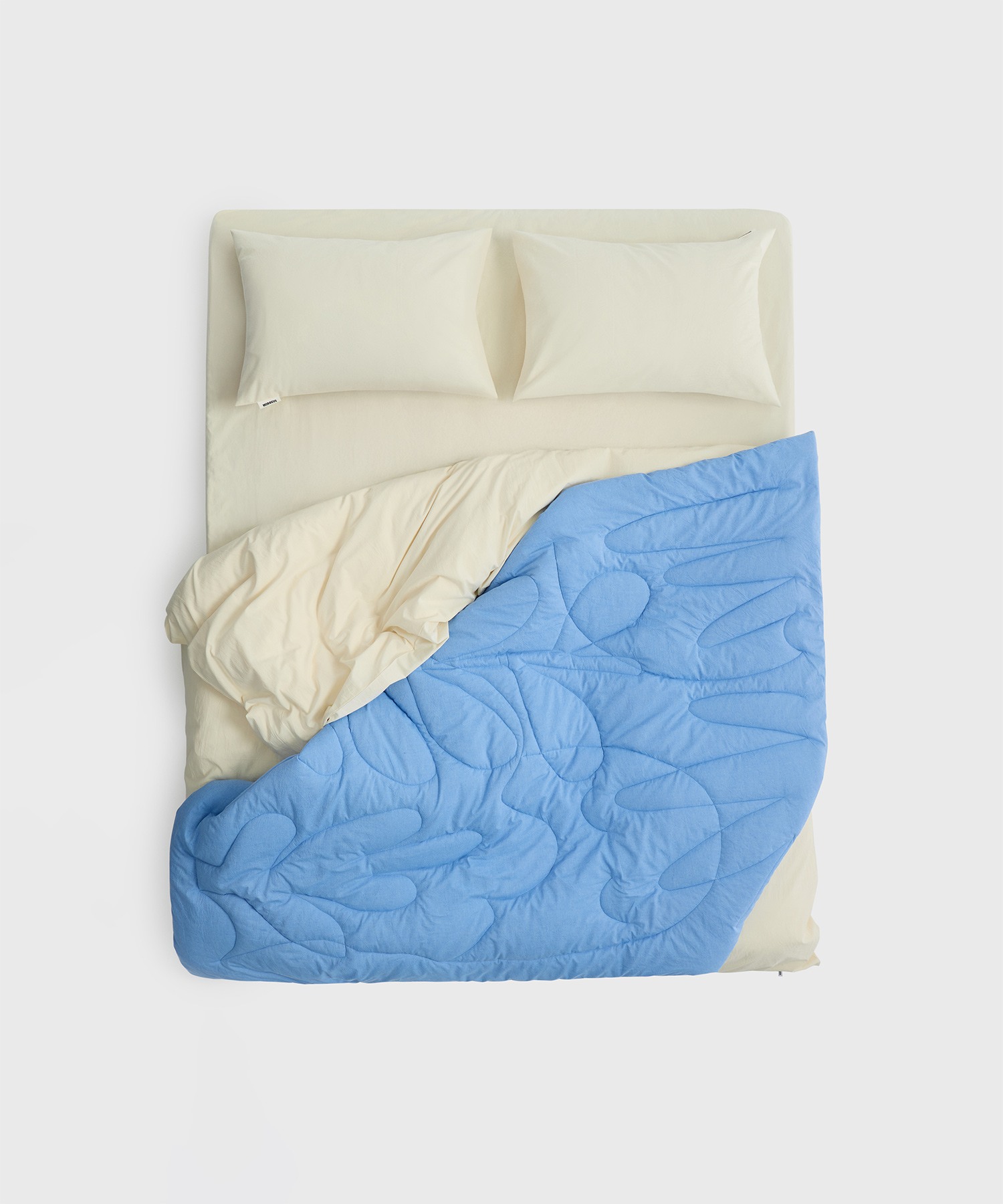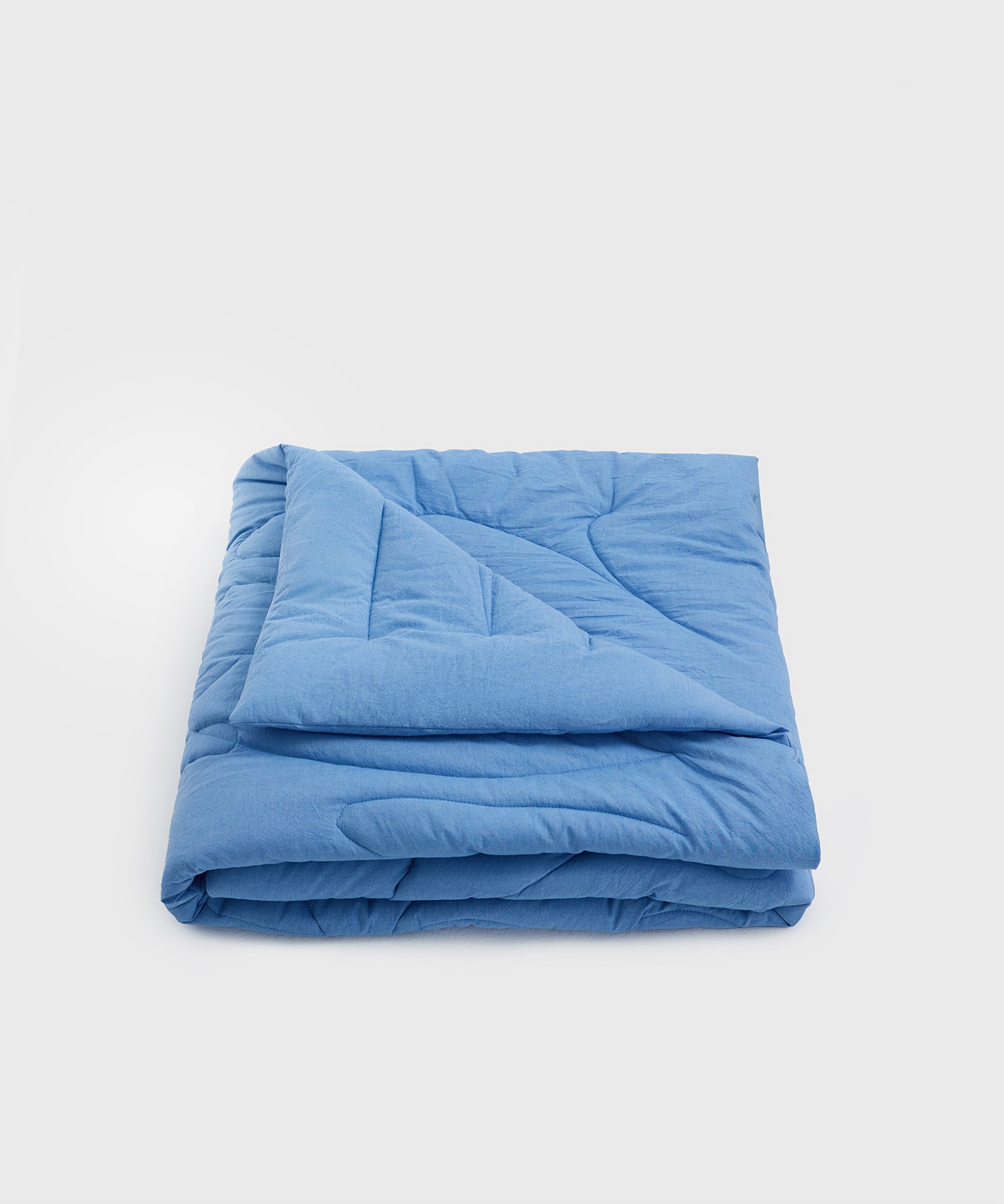 Одеяло-комфортер, которое можно не заправлять в пододеяльник. Снаружи — мягкий варёный хлопок. Внутри — гипоаллергенный наполнитель с эвкалиптовым волокном. Оно обладает природными антибактериальными свойствами и хорошо пропускает воздух.