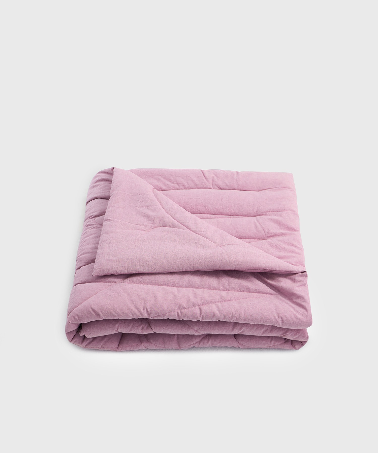 Одеяло-комфортер, которое можно не заправлять в пододеяльник. Снаружи — мягкий варёный хлопок. Внутри — гипоаллергенный наполнитель с эвкалиптовым волокном. Оно обладает природными антибактериальными свойствами и хорошо пропускает воздух.