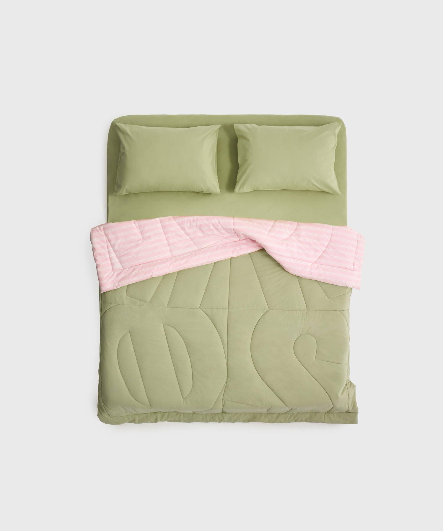 Для одеял мы разработали фирменную стёжку: издалека плавная геометрия линий складывается в буквы MRФS, укладывающиеся спать. Вблизи стёжка выглядит как абстрактный рисунок.
