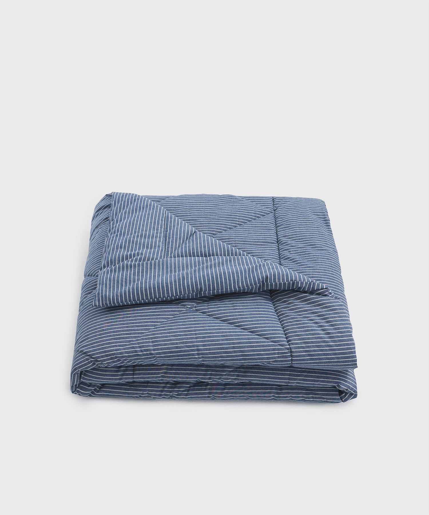 Одноцветное одеяло-комфортер, которое можно не заправлять в пододеяльник. Снаружи — мягкий варёный хлопок. Внутри — гипоаллергенный наполнитель файбер, по структуре напоминающий лебяжий пух. Он лёгкий, упругий, хорошо пропускает воздух и сохраняет тепло, быстро сохнет после стирки.