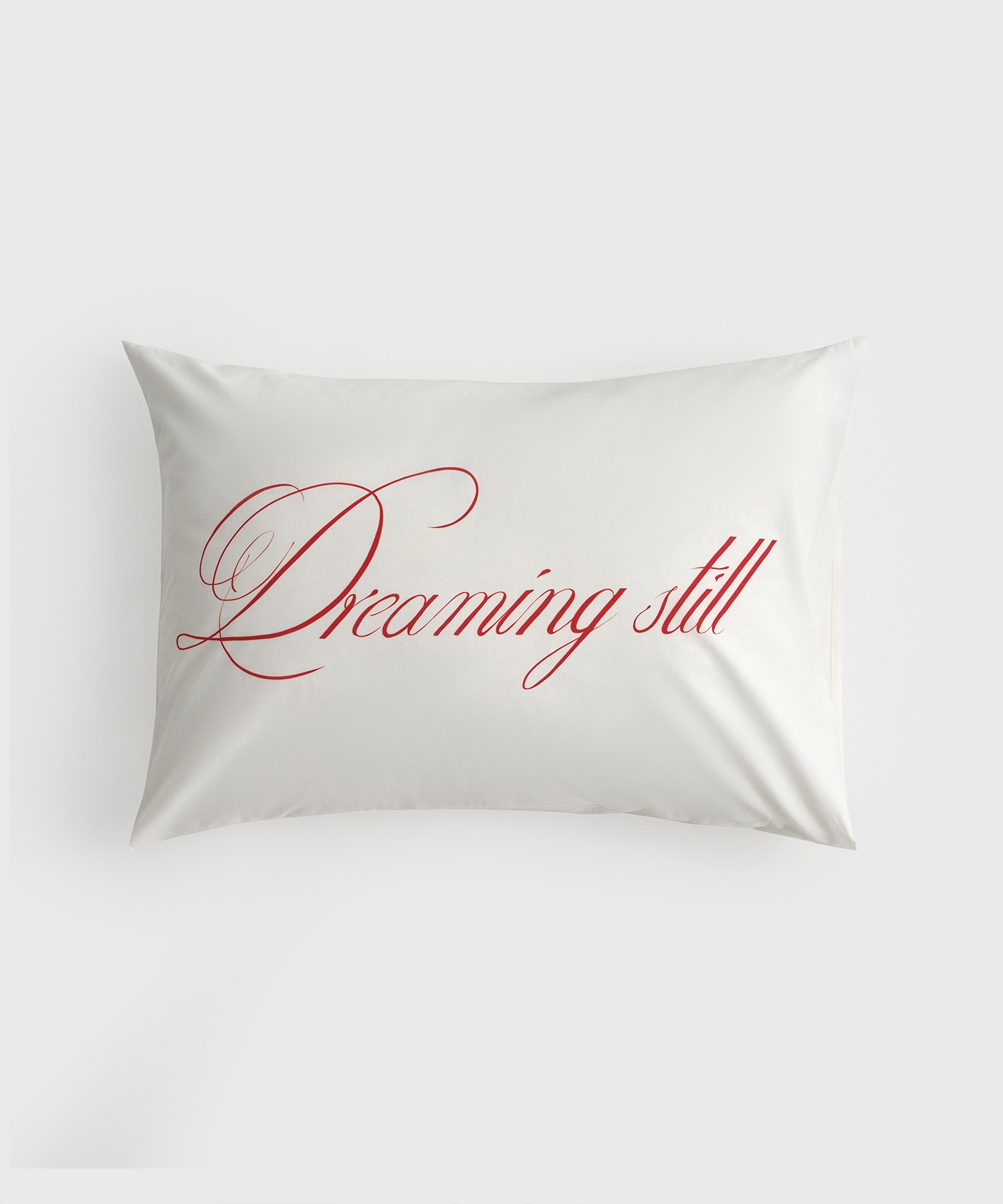 Наволочку Dreaming still можно дополнить хлопковой наволочкой Half Awake из коллаборации. Они доступны по отдельности и складываются в любовное послание, если положить их рядом. Изделие также сочетается с любыми другими наволочками из коллаборации MORФEUS х Abizyaeva.