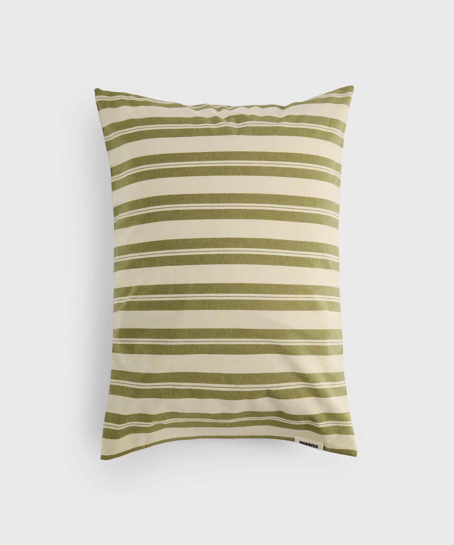 Мягкий, натуральный хлопок с авторской полоской бренда. Плотный на ощупь, отлично смотрится без глажки.