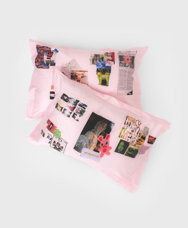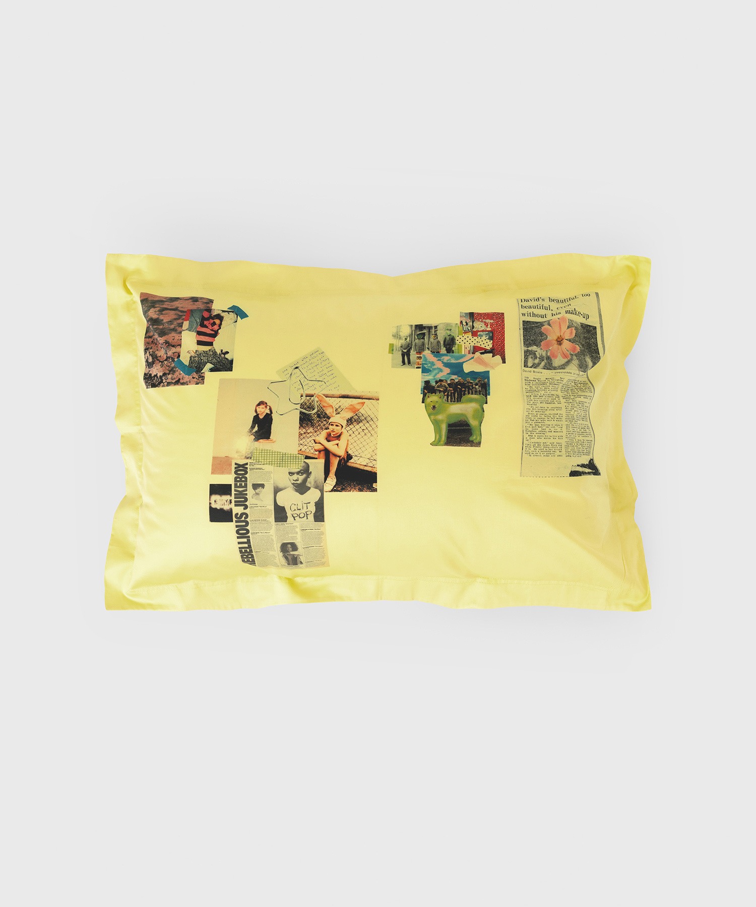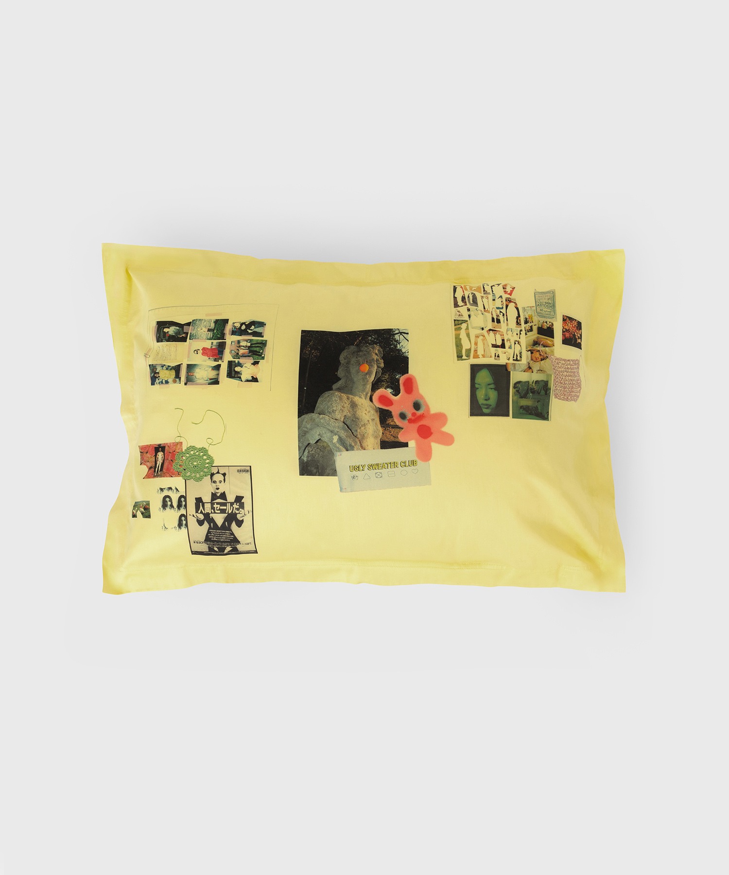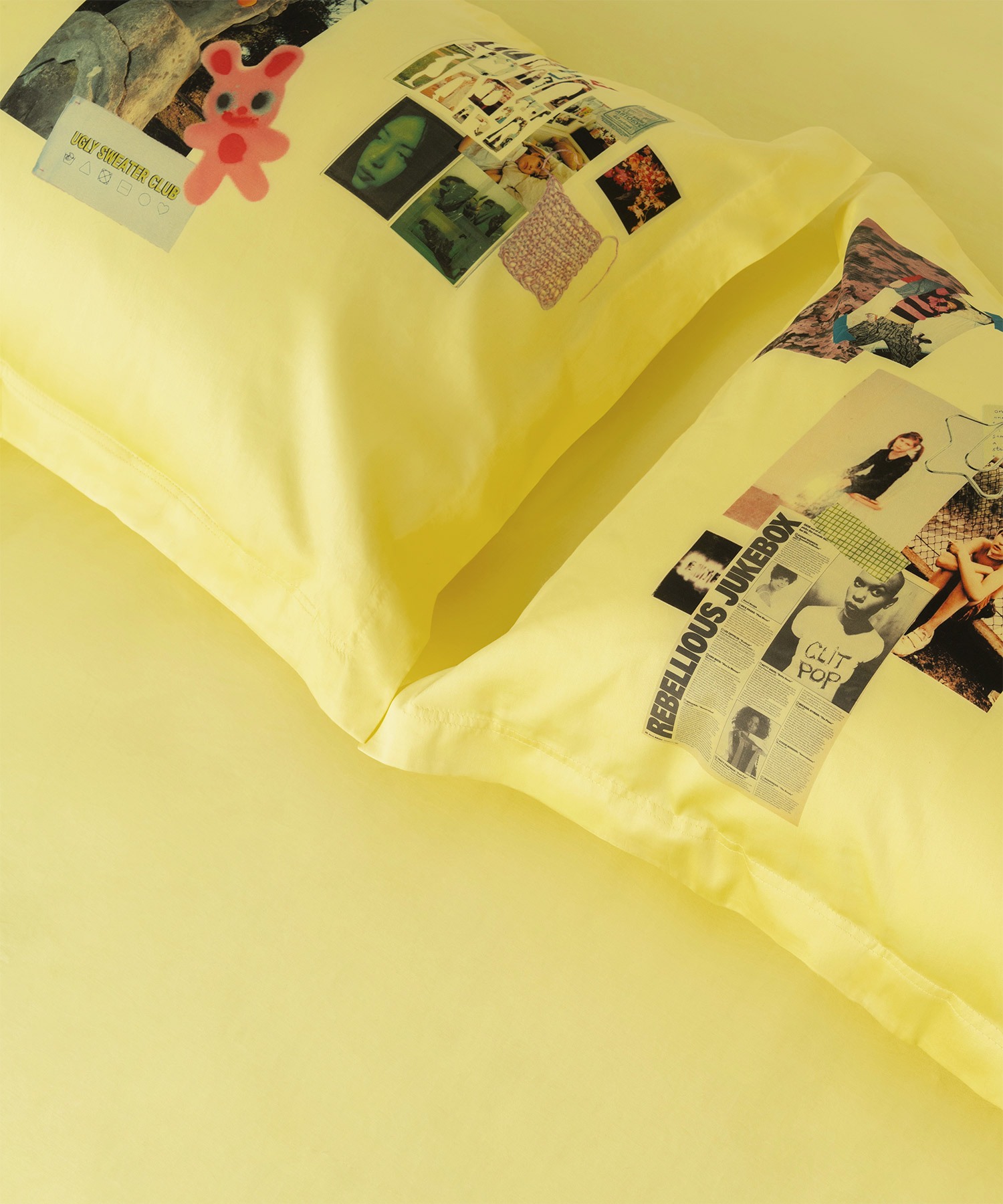 Наволочка из коллаборации MORФEUS х UGLY SWEATER CLUB вдохновлена мифической подростковой комнатой, которую бренд UGLY впервые создал в Токио. Принты отсылают к дневнику или скетчбуку: здесь вырезки из журналов, мини-постеры, наклейки, билетики, записки. Принт отличается на левой и правой наволочках.