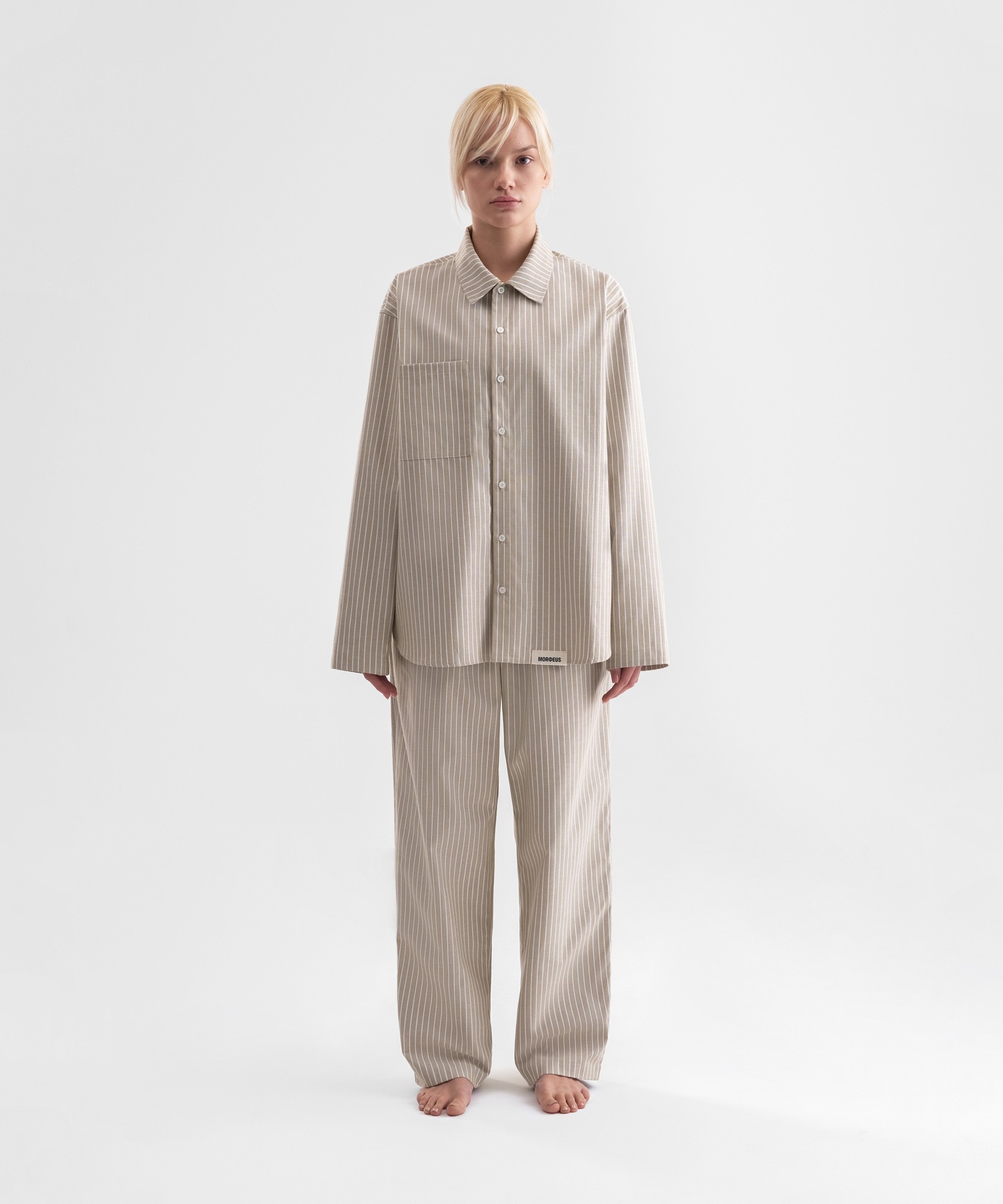 Отложной воротник, один нагрудный карман, застёжка на брендированные пуговицы, скруглённая линия низа. Длинный прямой рукав обработан вчистую — можно небрежно подвернуть для расслабленного настроения. Изнанка выглядит эстетично благодаря закрытым швам.