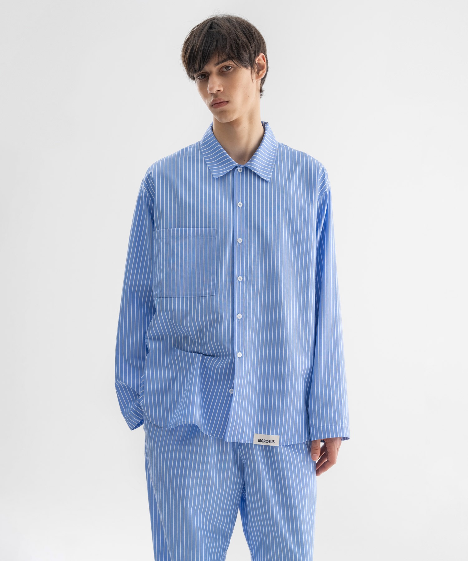Отложной воротник, один нагрудный карман, застёжка на брендированные пуговицы, скруглённая линия низа. Длинный прямой рукав обработан вчистую — можно небрежно подвернуть для расслабленного настроения. Изнанка выглядит эстетично благодаря закрытым швам.