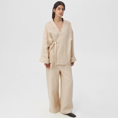 Круглая горловина, длинный прямой рукав. Смещённая вперёд линия плеча на японский манер создаёт плавный переход к пройме и отвечает за выверенную, естественную посадку.