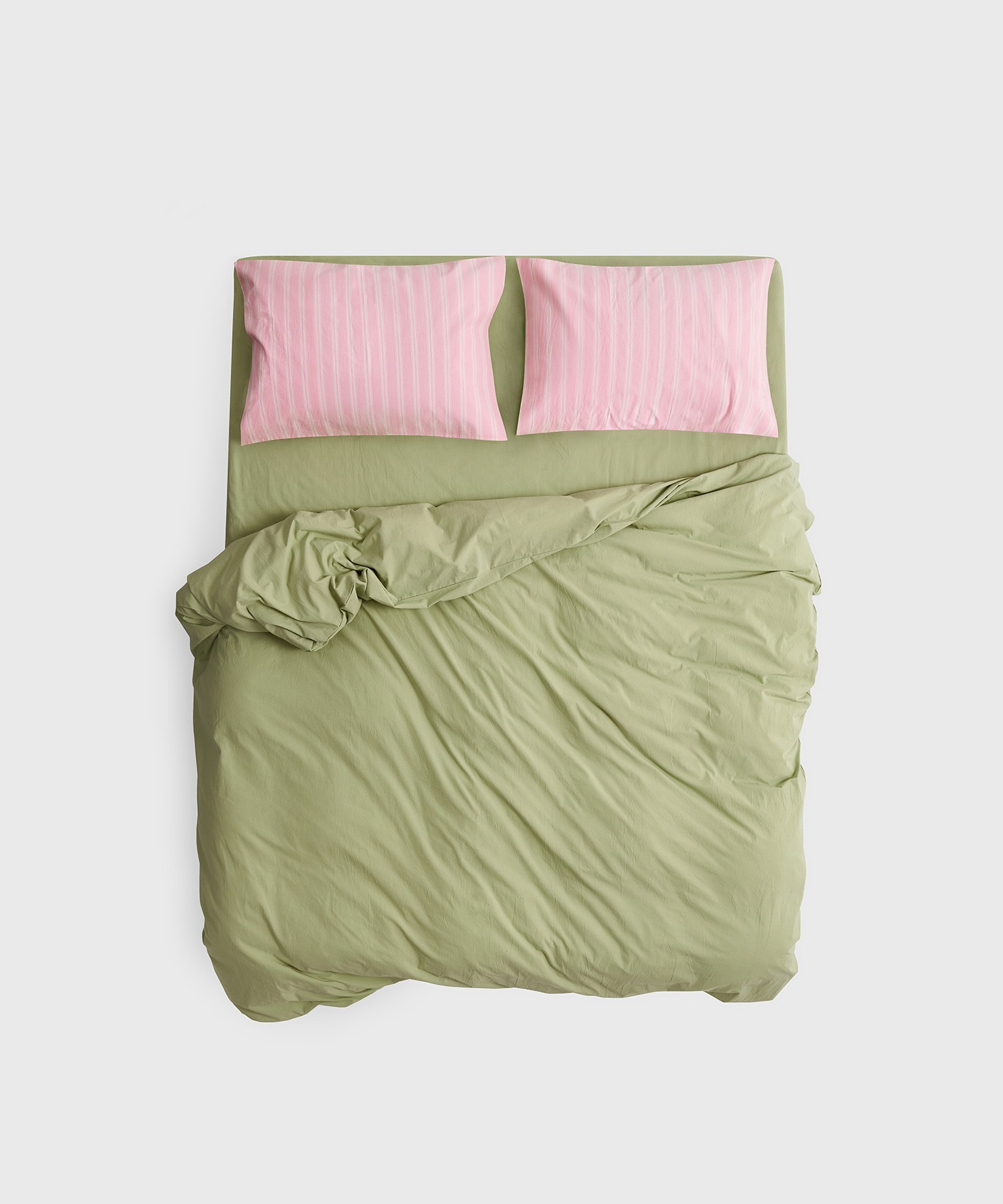Сет из мягкого, натурального хлопка с однородным матовым оттенком и авторской полоской бренда. Плотный на ощупь, отлично смотрится без глажки.