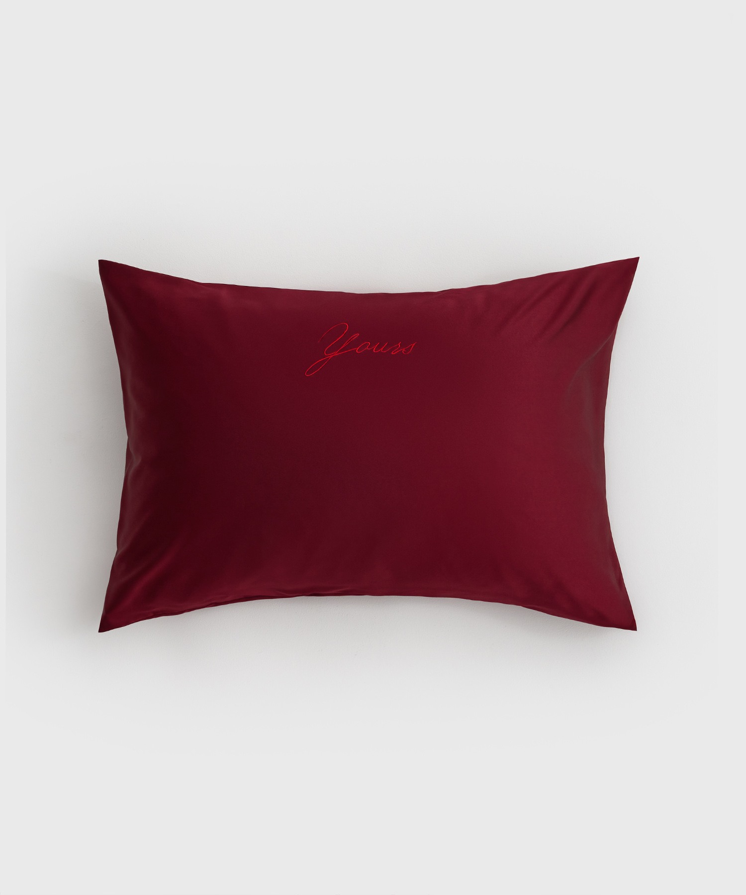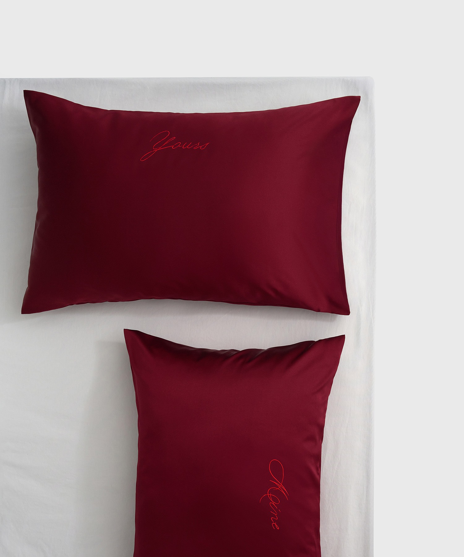 Вышивка красными нитями на лицевой стороне наволочки выполнена в узнаваемой стилистике тату-артиста Ульяны Абизяевой, автора концепции. Деликатная надпись станет тонким намёком, что для признания в любви не нужно ждать особенной даты. Каждый день вместе — уже праздник.