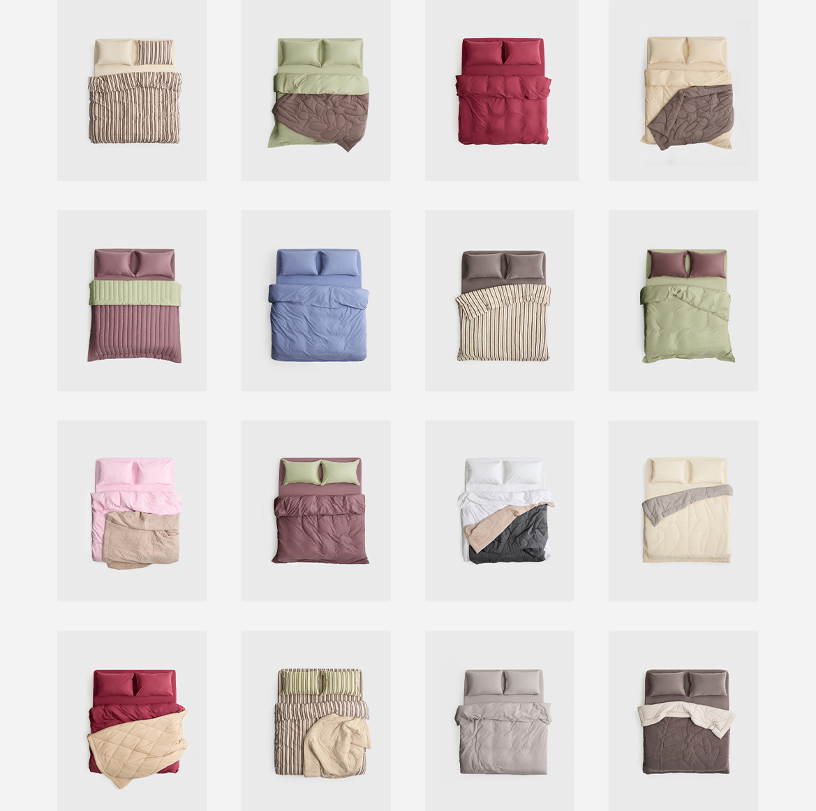 Модель представлена в разных расцветках и сочетается с другим нашим текстилем, так что вы легко соберете идеальный комплект для своей кровати.