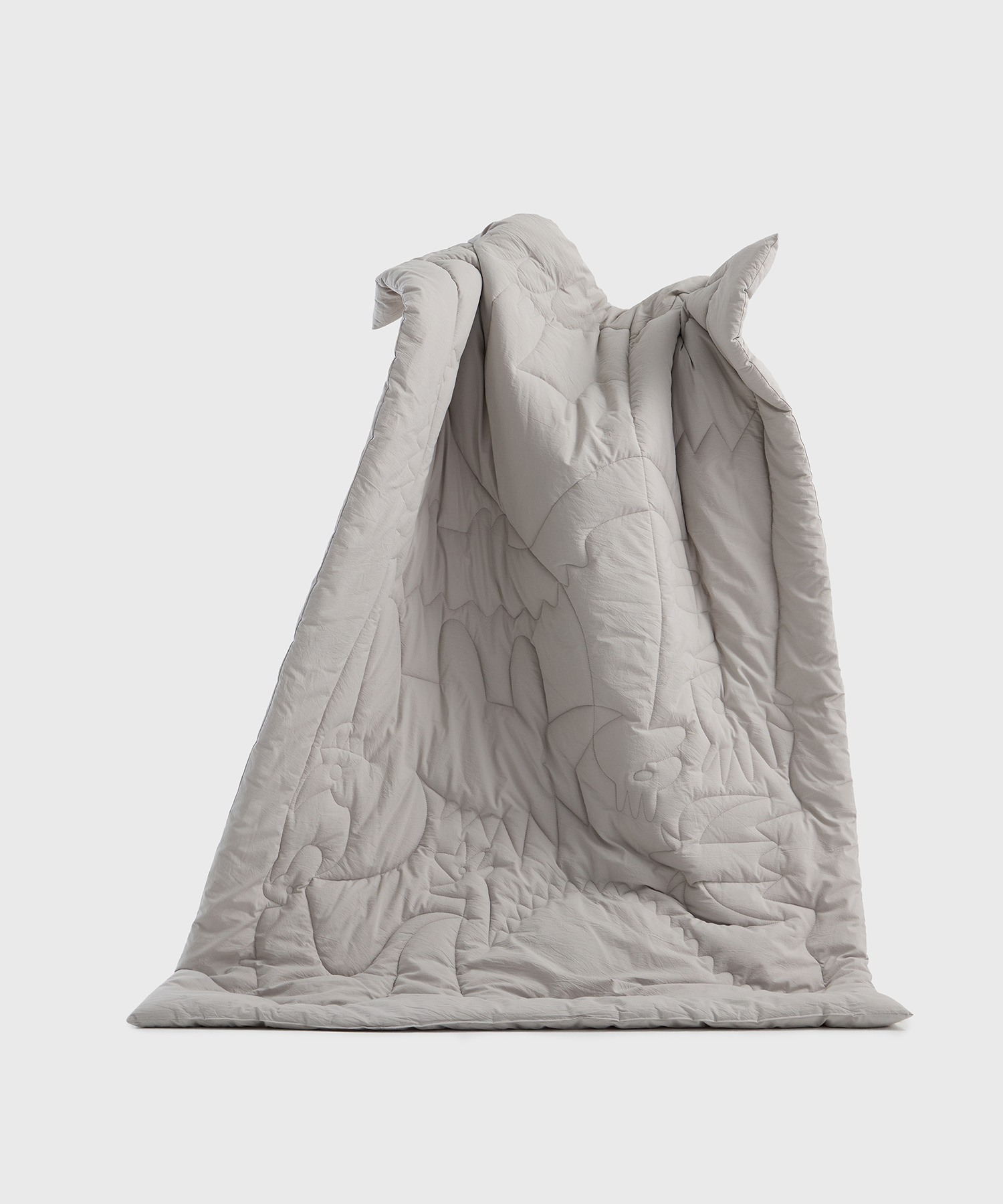 Фантазийная стёжка одеял — фирменное изображение динозавров, которые особенно нравятся детям (можно использовать для детской комнаты). Вблизи плавные линии выглядят как абстрактный рисунок.