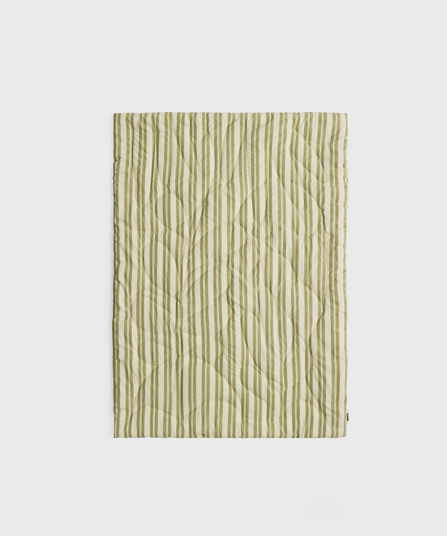 Фантазийная стёжка одеял издалека складывается в цветочные мотивы. Вблизи плавные линии выглядят как абстрактный рисунок.