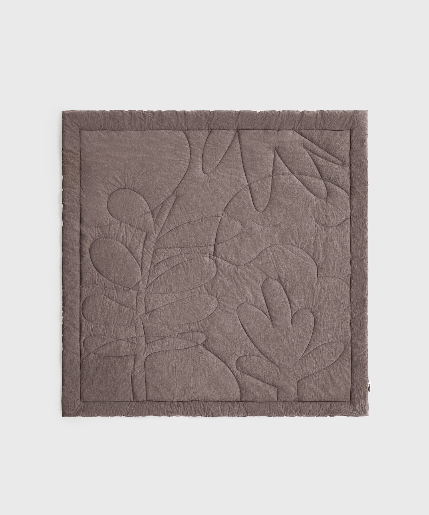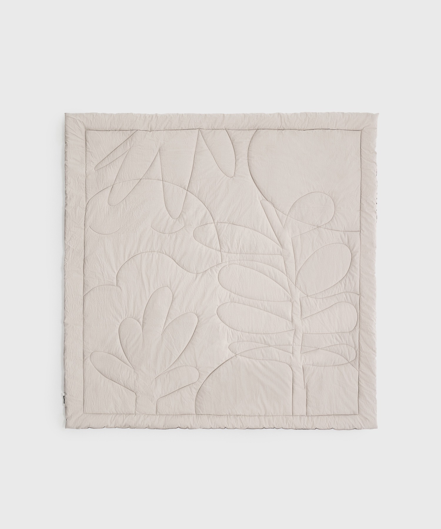 Фантазийная стёжка одеял издалека складывается в цветочные мотивы. Вблизи плавные линии выглядят как абстрактный рисунок.
