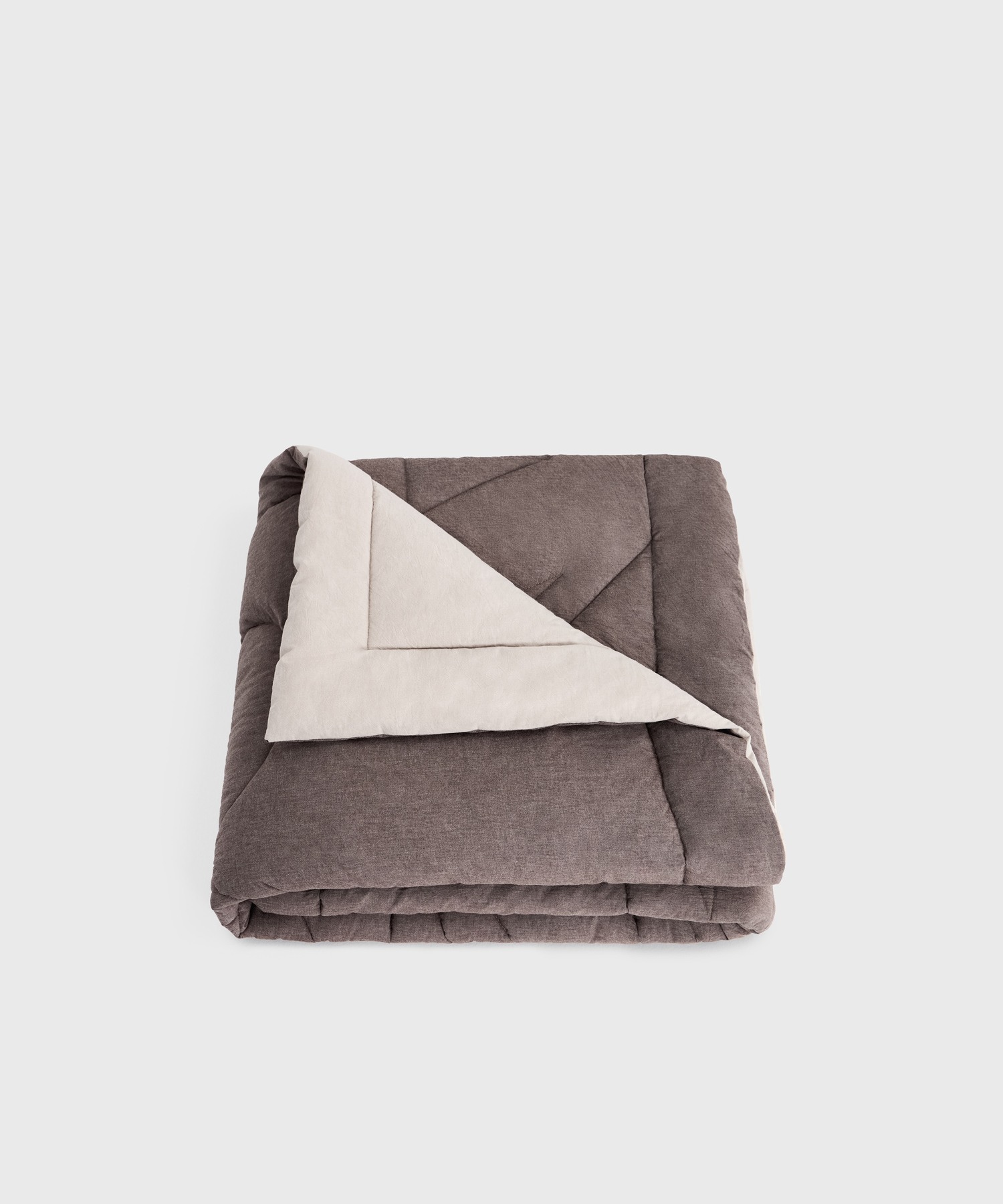 Двустороннее одеяло-комфортер, которое можно не заправлять в пододеяльник. Снаружи — мягкий варёный хлопок. Внутри — гипоаллергенный наполнитель с эвкалиптовым волокном. Оно обладает природными антибактериальными свойствами и хорошо пропускает воздух.