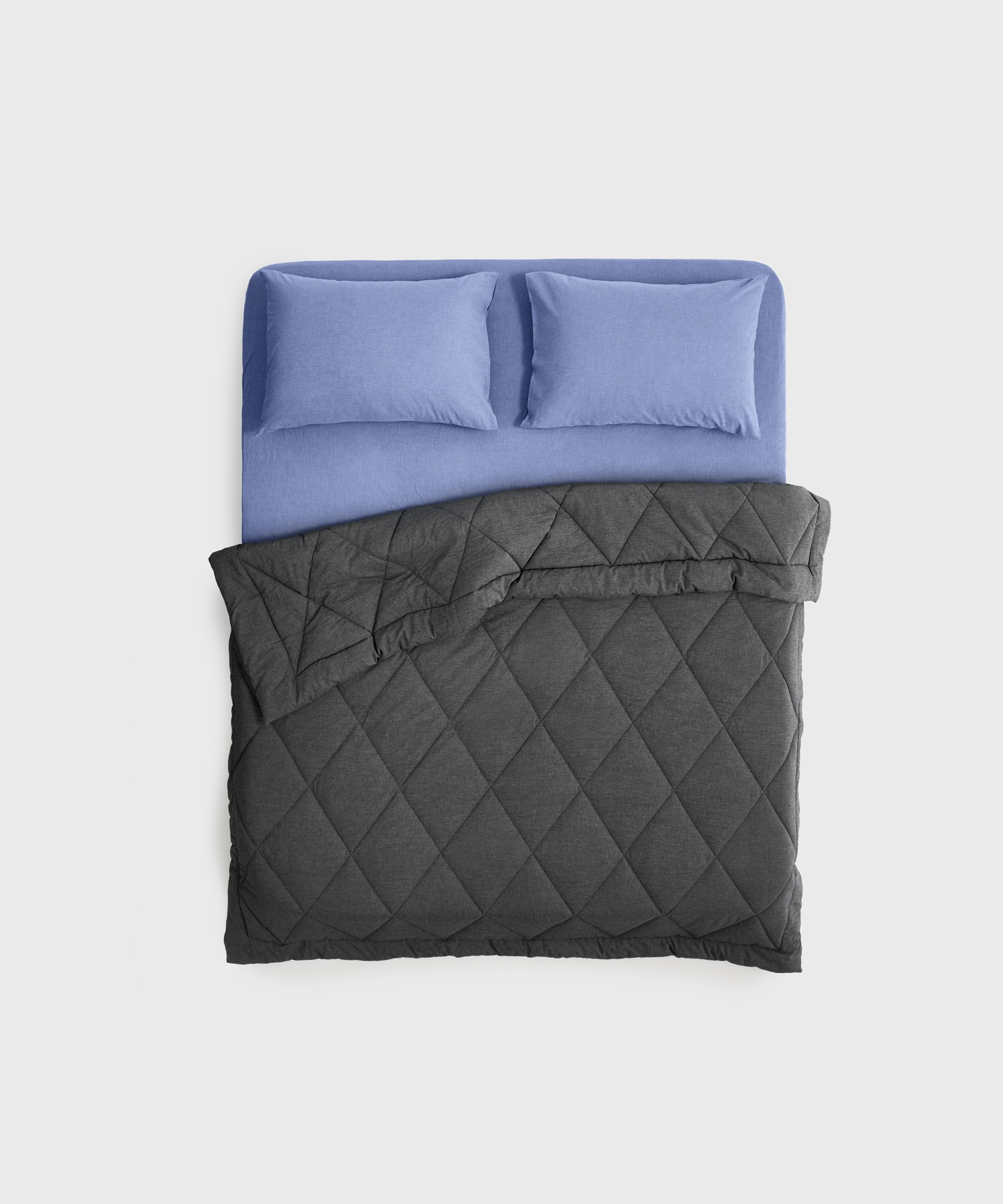 Одноцветное одеяло-комфортер, которое можно не заправлять в пододеяльник. Снаружи — мягкий варёный хлопок. Внутри — гипоаллергенный наполнитель файбер, по структуре напоминающий лебяжий пух. Он лёгкий, упругий, хорошо пропускает воздух и сохраняет тепло, быстро сохнет после стирки.