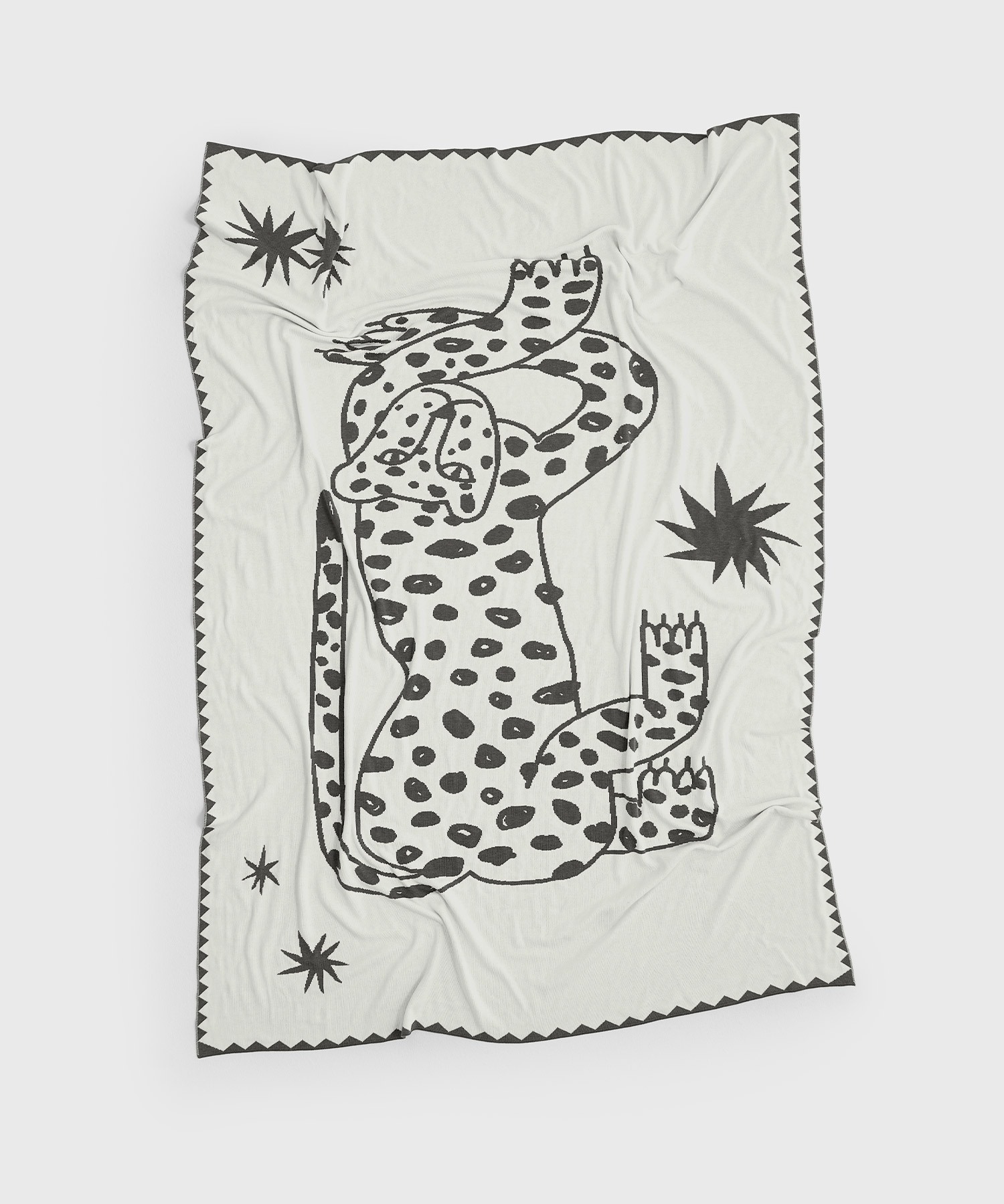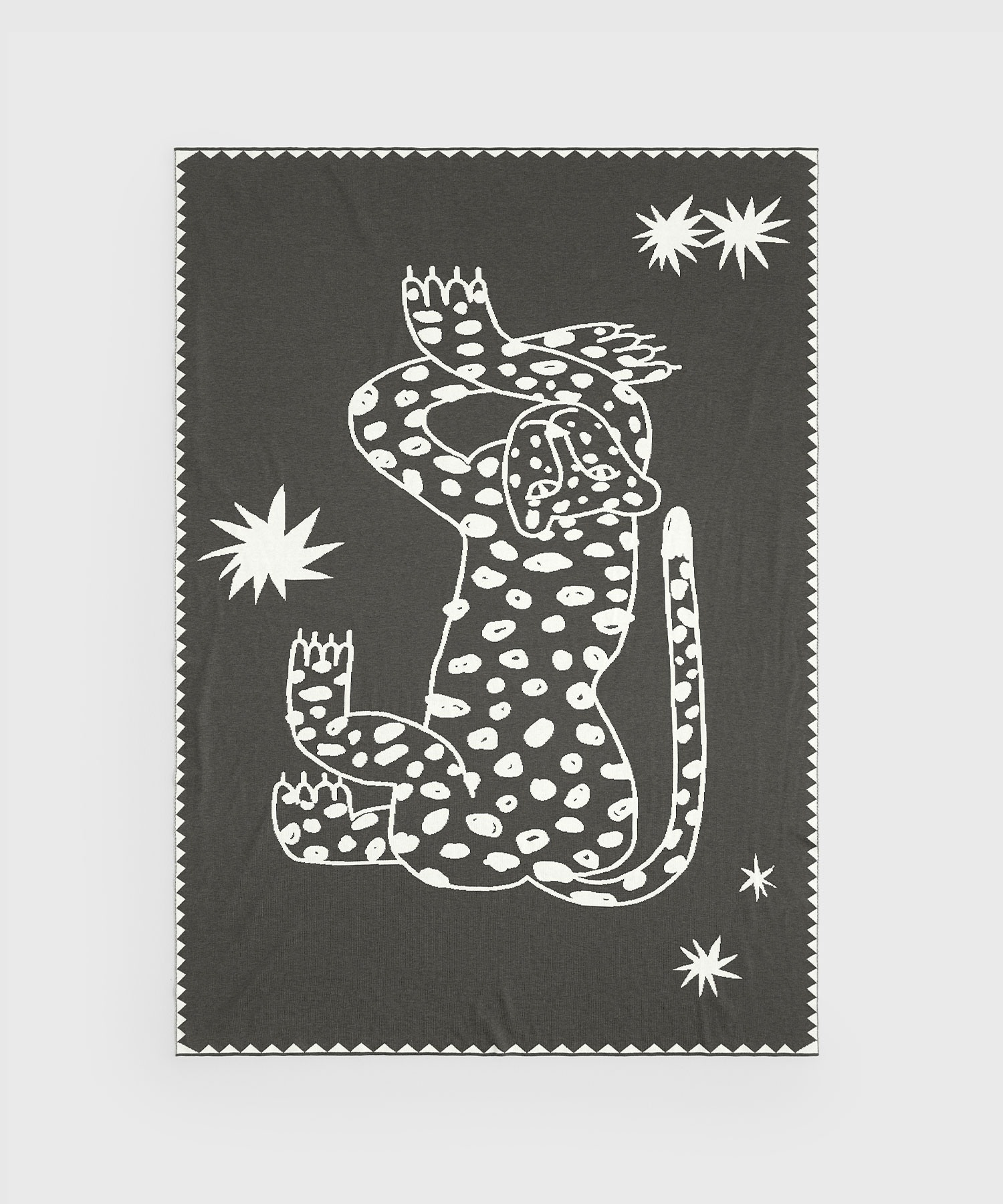 Игривый принт уравновешен нейтральным цветовым сочетанием, выбранным для пледа. Лео дополнит интерьер гостиной или спальни, станет лучшим другом детей и согреет в своих объятиях прохладным утром.