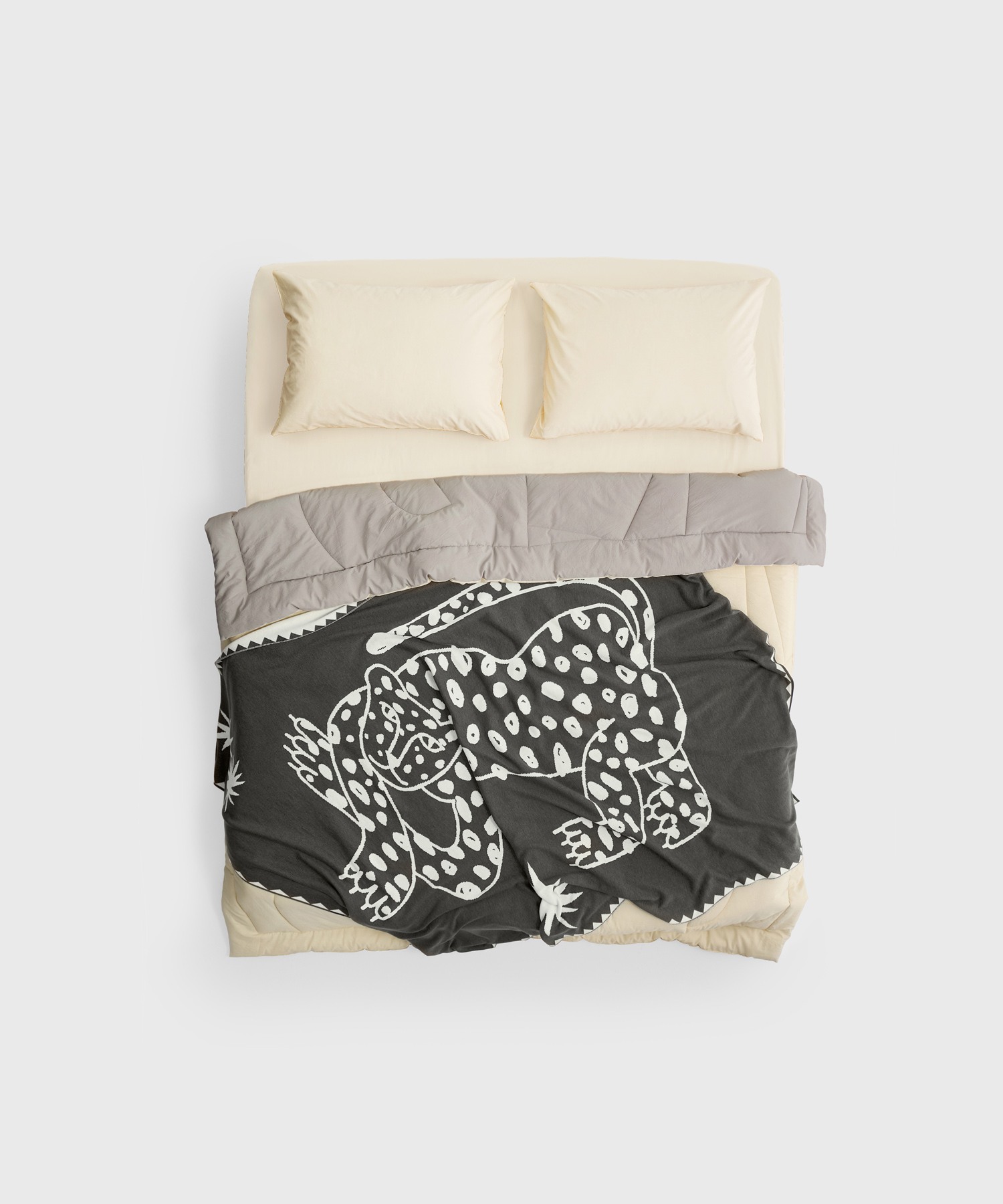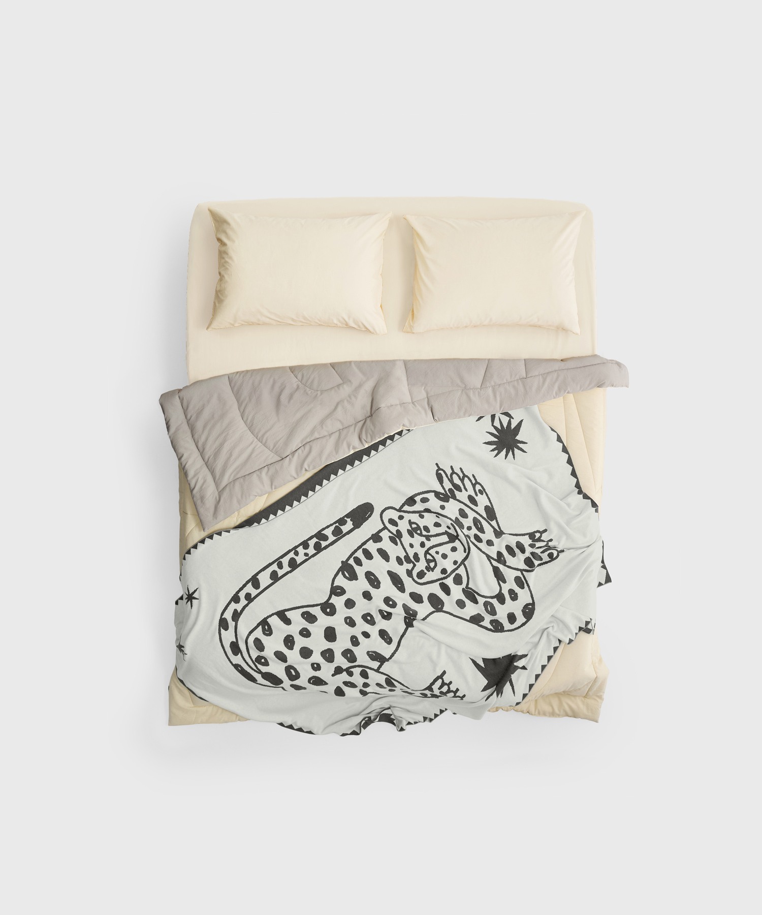 Двусторонний текстильный плед с изображением гепарда Лео — персонажа, которого придумала художница Маша Сомик. MORФEUS приручил один из её эскизов, объединяя утилитарную функцию и арт-составляющую.