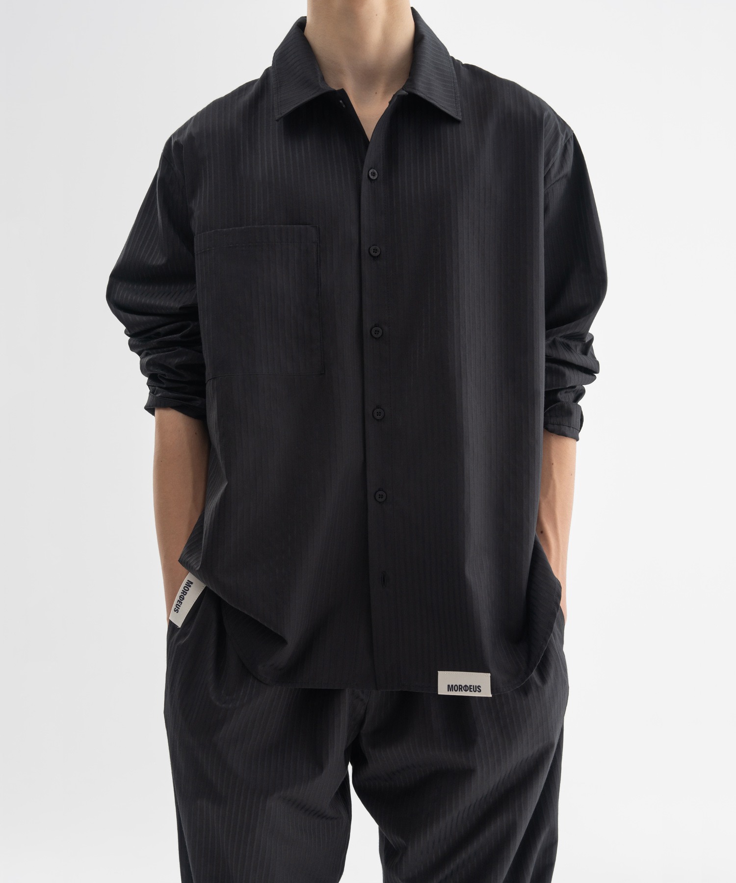 Отложной воротник, один нагрудный карман, застёжка на брендированные пуговицы, скруглённая линия низа. Длинный прямой рукав обработан вчистую — можно небрежно подвернуть для расслабленного настроения. Изнанка выглядит эстетично благодаря закрытым швам.