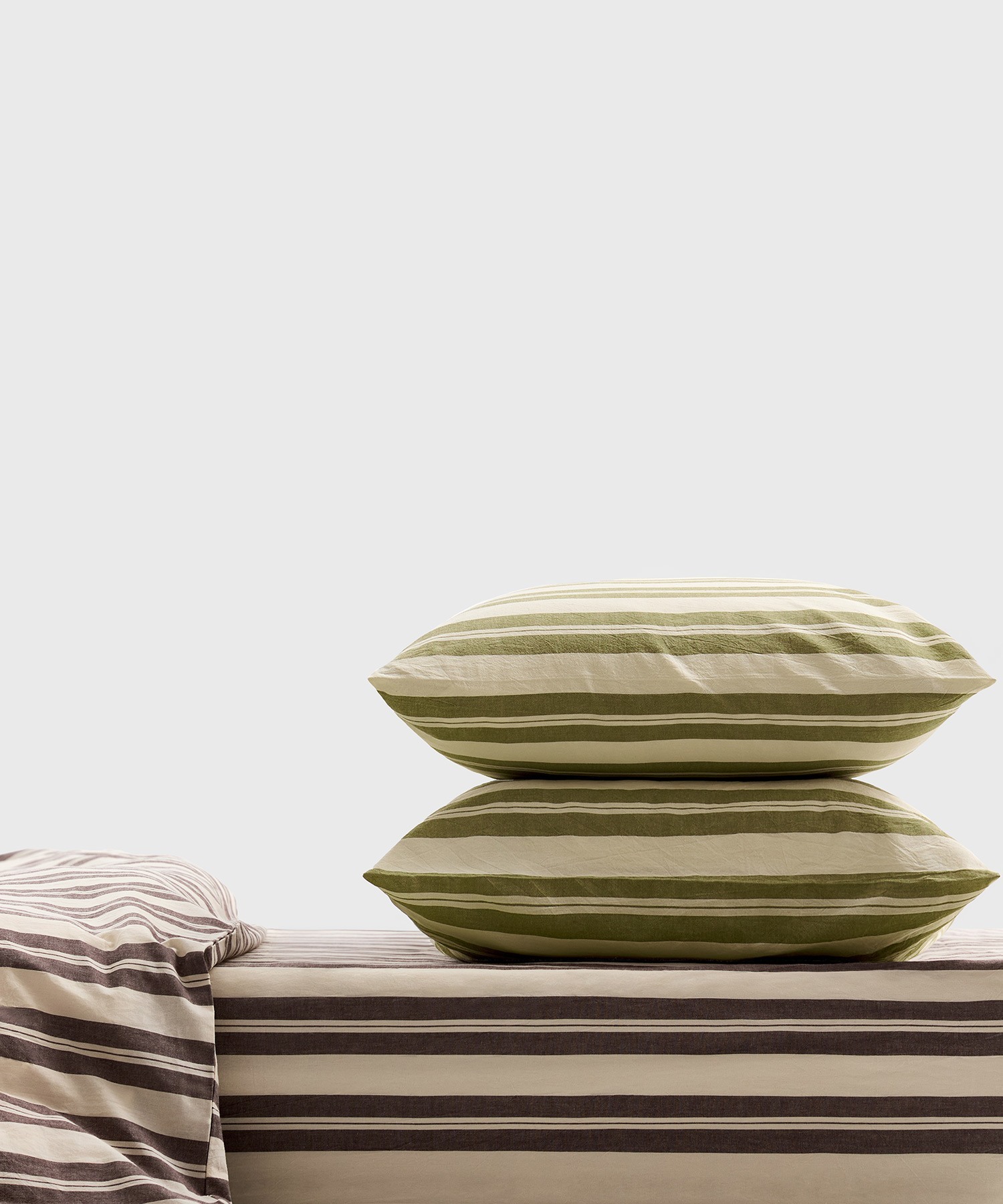 Мягкий, натуральный хлопок с авторской полоской бренда. Плотный на ощупь, отлично смотрится без глажки.