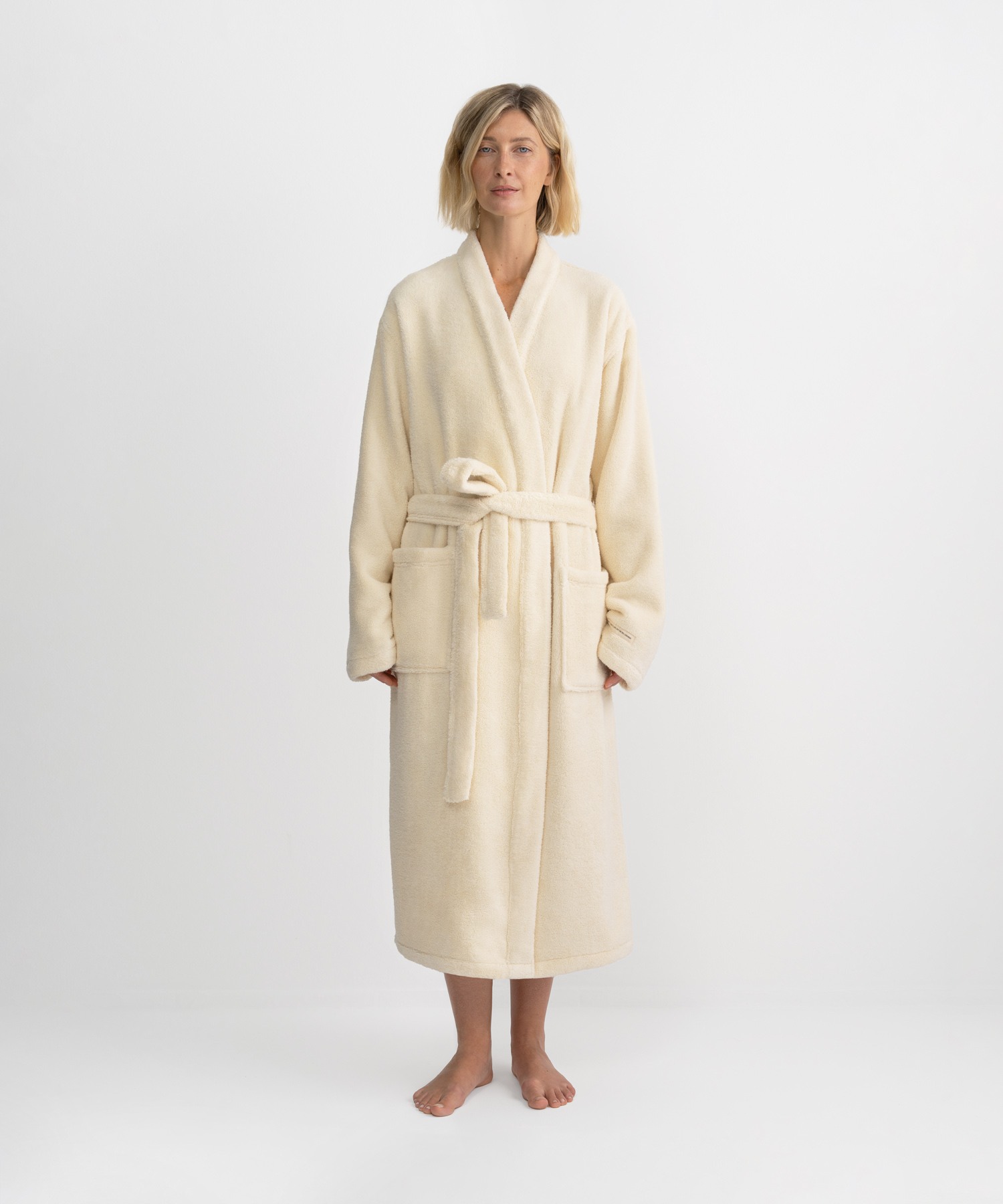 Халат из премиального хлопка Air Cotton с пышной, объёмной текстурой. Он мягко обволакивает кожу, создавая ощущение воздушного облака. Силуэт unisex для него и для неё.