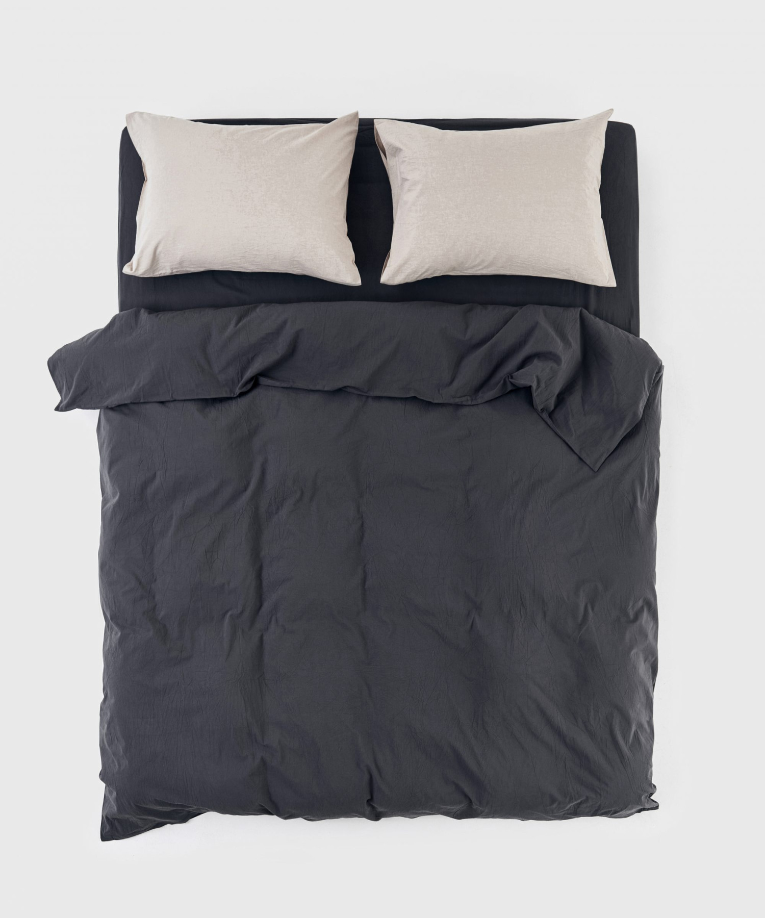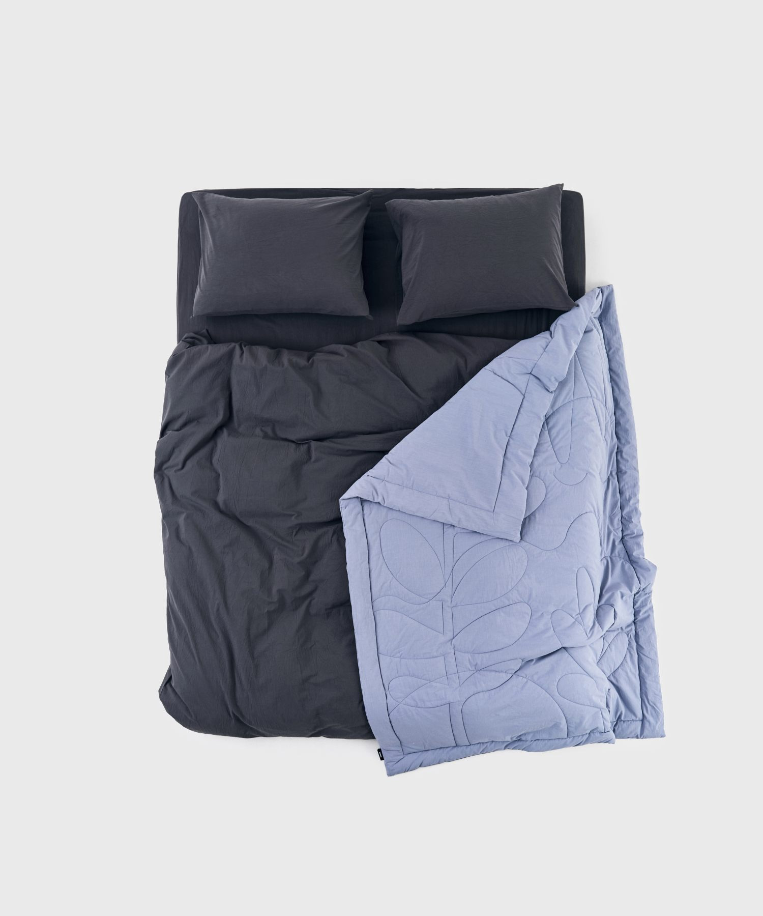 Пододеяльник раскрывается как коробка для пиццы. Вкладываете одеяло внутрь и застегиваете потайную молнию, вшитую по 3-м сторонам